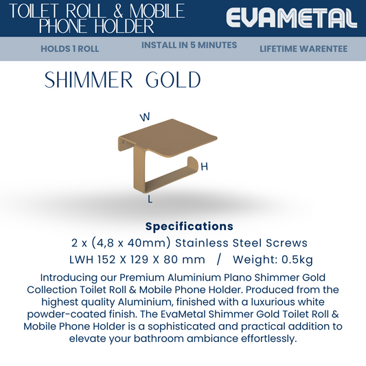 Toilet Roll Holder with Mobile Phone Storage - SHIMMER GOLD - Plano Collection