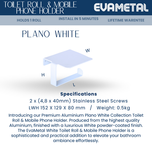 Toilet Roll Holder with Mobile Phone Storage - WHITE - Plano Collection