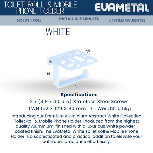 Toilet Roll Holder with Mobile Phone Storage - WHITE - Abstract Collection